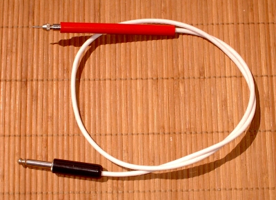 As mentioned above the Eico 221 did not come with test leads. For AC and resistance measurements I used the test leads from my Triplett 630A VOM (Volt Ohm Meter). For DC measurements I build a test lead using a piece of Teflon coax cable. The schematic showed 15 MegOhms of resistance installed in the probe.